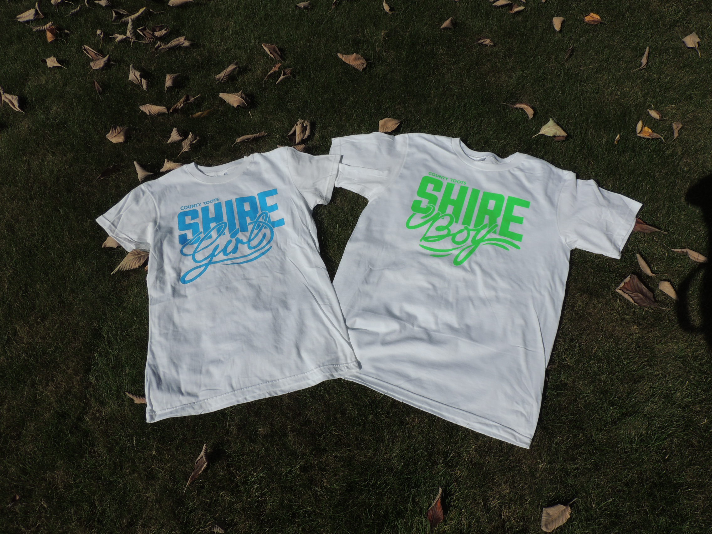 We are not a year into this endeavour yet, and so far we have one product on sale. Our “Shire Boy” and “Shire Girl” T-shirts are available in a wide variety of sizes and are on sale at £16 + P&P. I want one!